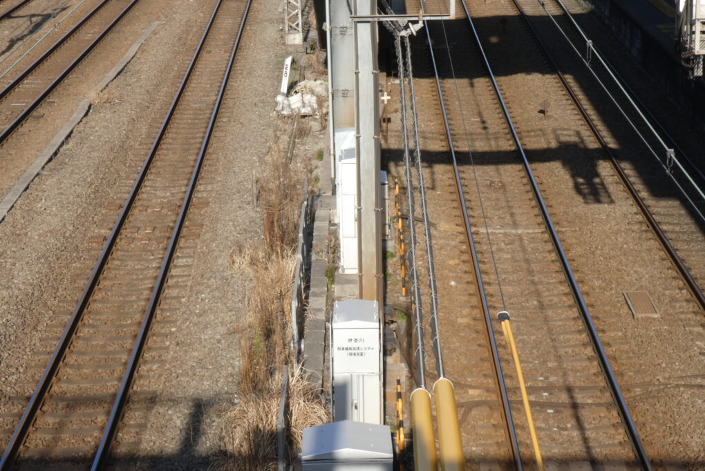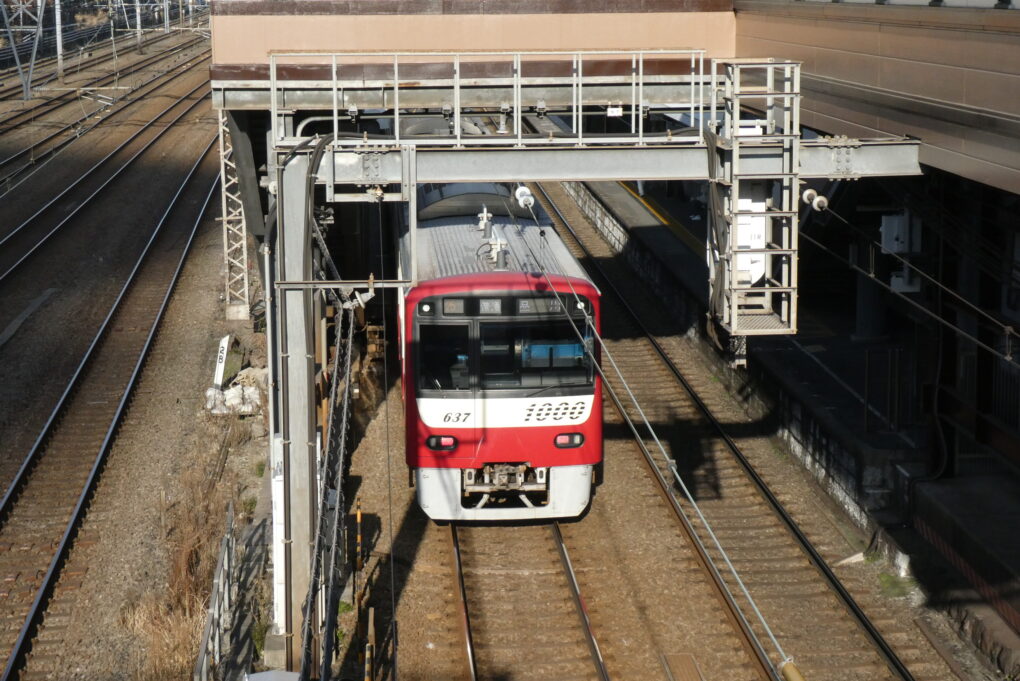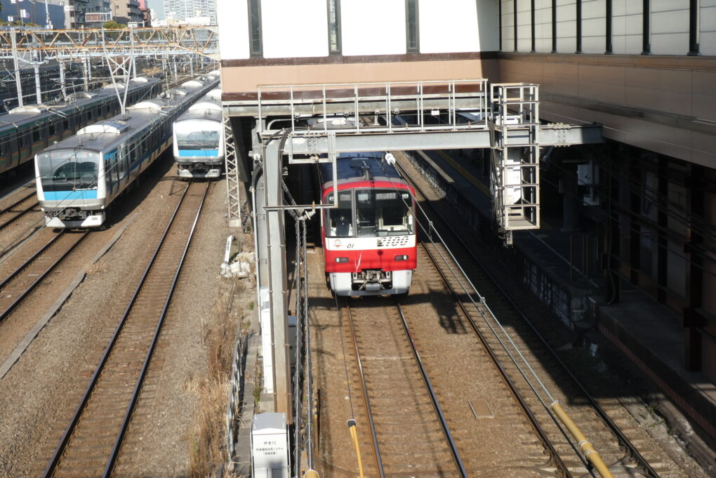 京急の線路は、標準軌なのでJRの線路よりも広いのが分かる。