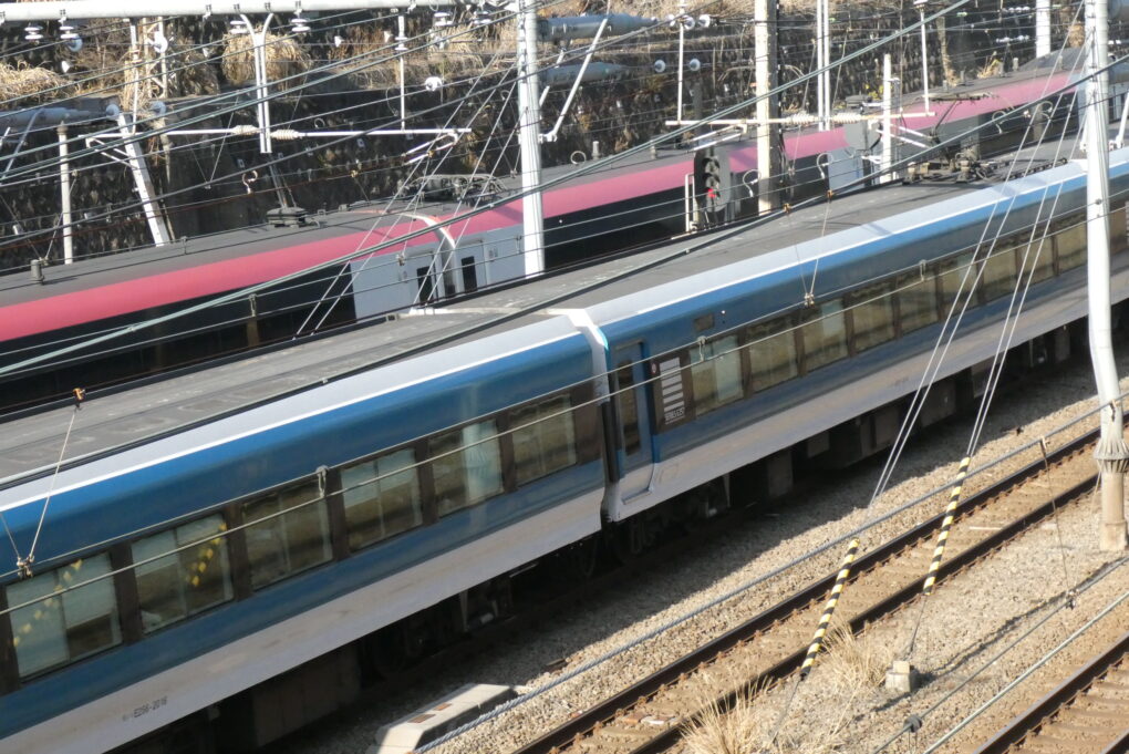 ラッキーなことに、特急踊り子と成田エクスプレスが並走する光景を見ることができた。