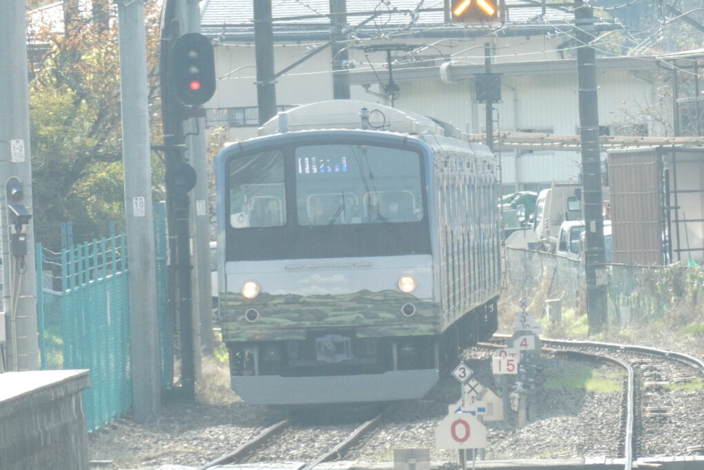 高尾まで行くJR直通列車が、向かいのホームにやって来た。