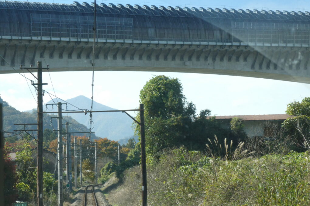 田野倉を出てしばらくすると、見上げるような高さの高架を潜る。