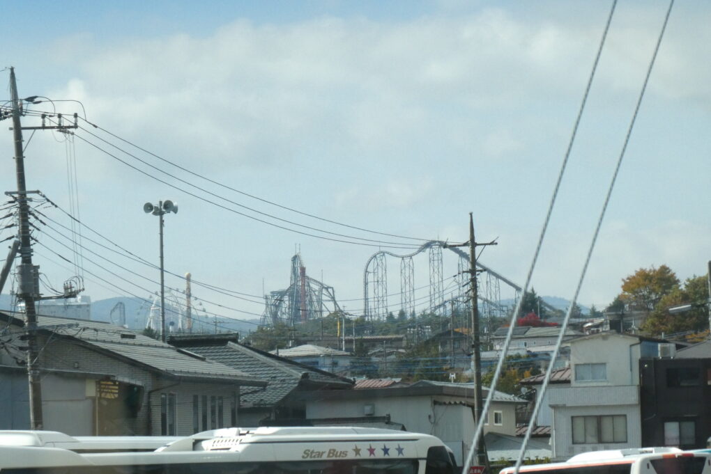 先ほど遠くにあった絶叫マシンが、真横に見える。