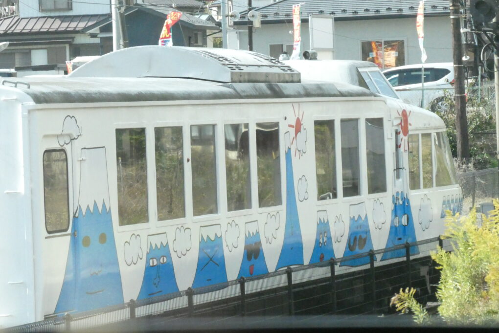 普通列車以外に、富士山のイラストが可愛らしいフジサン特急や、赤色で高級感溢れる富士山ビュー特急も走る。