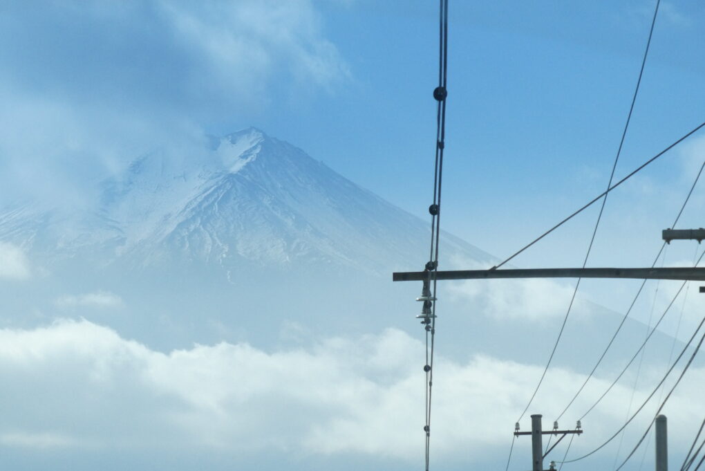 行く手に富士山が見える月江寺、ホームから富士山が見える富士山