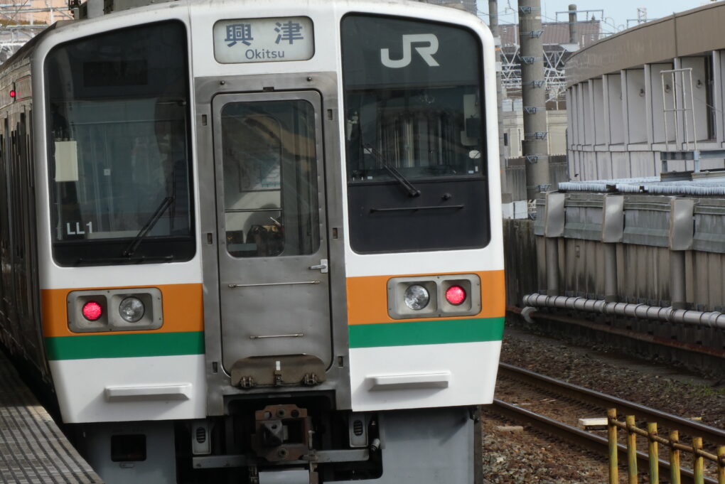 東京〜熱海区間を走るのは、オレンジとグリーンの帯が鮮やかな車両(E231系、E233系)だ。